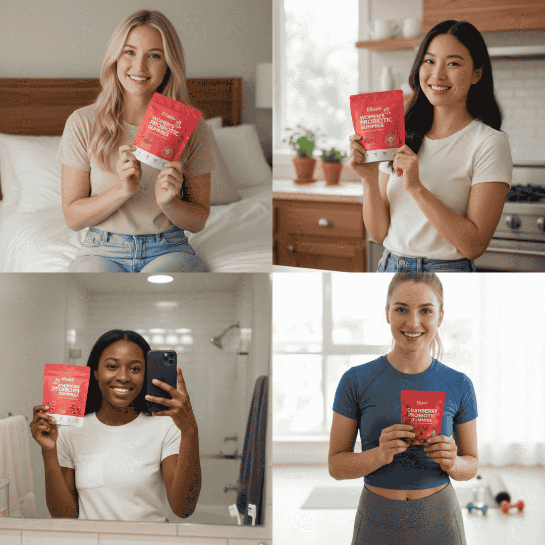 Tasty cranberry gummies with 5 Billion CFU probiotics (e.g., Lactobacillus rhamnosus, reuteri, gasseri), prebiotic fiber, vitamin C, and cranberry extract. Vegan-friendly, gluten-free. GMP-produced and batch-tested.