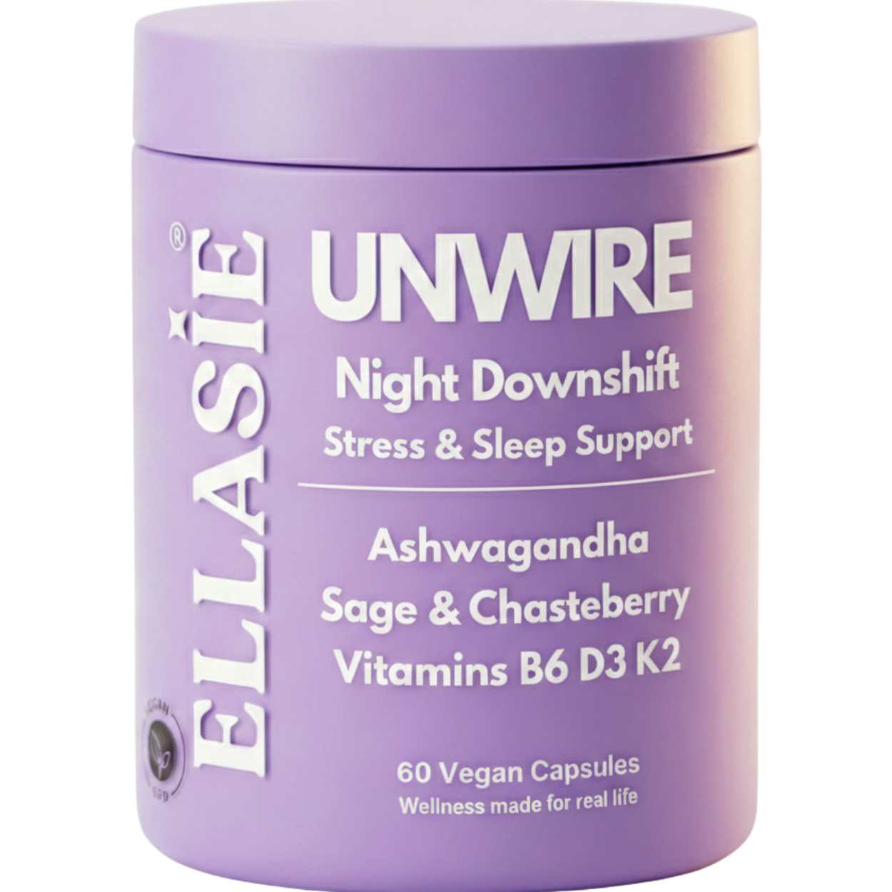 A maioria dos suplementos económicos contém um único ingrediente numa única dosagem. O UNWIRE PM é uma fórmula 6 em 1 que combina ashwagandha com agnocasto, salva, vitamina B6, vitamina D3 e vitamina K2 — cada um deles direcionado para um aspeto diferente da recuperação noturna e do equilíbrio hormonal nas mulheres.